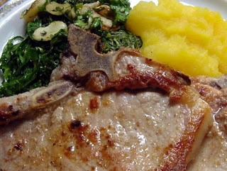 Tempere o lombo com sal e cominho e deixe em geladeira para pegar o sabor Lamine o alho e ponha para dourar em pouco óleo Junte a couve fatiada, corrija de sal e deixe refogar Cozinha a mandioquinha e amasse com um garfo Tempere com sal, noz moscada e junte o leite desnatado Aqueça um fio de óleo e grelhe o lombo e sirva com couve e purê de mandioquinha